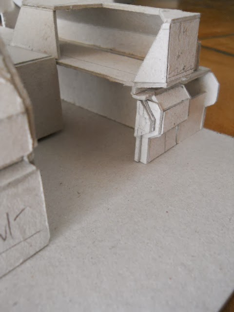 The bridge is on three different levels and to save carboard, I had to brainstorm hard for exact cuttings in one and only sheet.