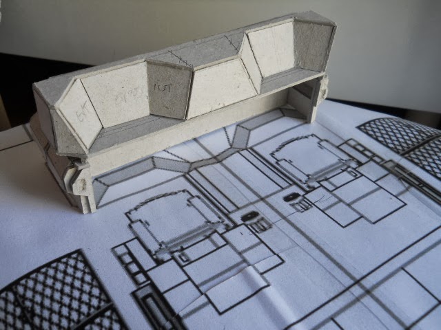 After my first scratchbuilt model, I had some cardboard left. Not enough for a new big model but quite enough for a small one.The thing was that I didn't want to escape the Alien universe and the Nostromo... so let's stay inside. When I consider the fantastic inner sets and designs of the spaceship, my favorite one is its main bridge...
