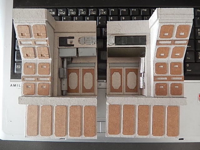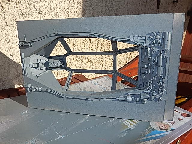 Au travail sur les paroies arrières, la petite partie du couloir d'accès au cockpit, et les éléments de déco des paroies.Première peintures aussi...