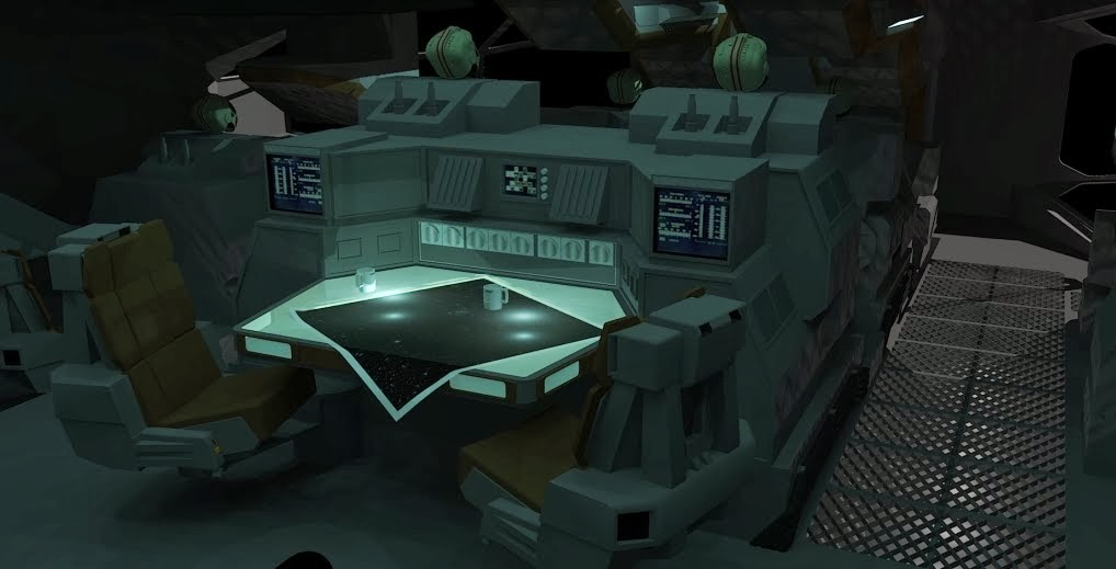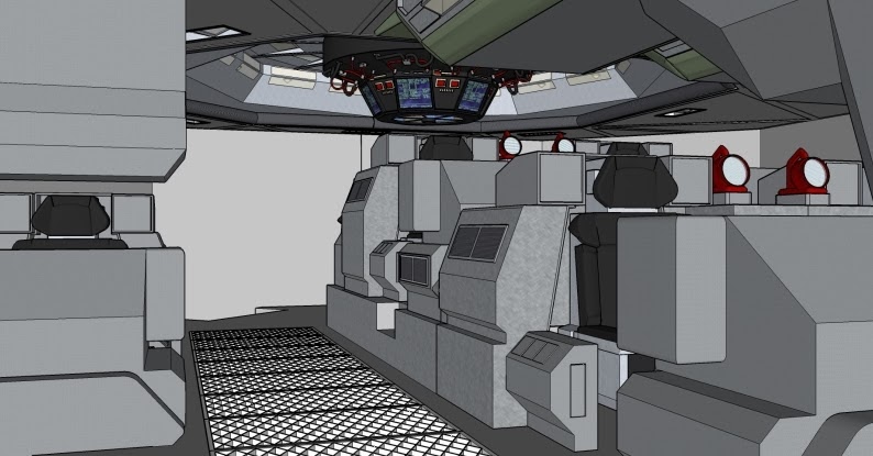 Je me suis mis aussi a penser qu'il faudrait au final pouvoir observer le modèle sous différents angles et qu'il fallait donc réfléchir à des éléments amovibles. Déjà, il fallait qu'on puisse le voir comme sur la première photo de l'article, qui est pour moi la vue la plus emblématique de ce décor. Je devais donc réfléchir a deux baies vitrées latérales amovibles. Il serait sympa aussi qu'on puisse l'observer de l'arrière, comme si l'on débouchait du couloir du mess. Il fallait donc pour cela que les parois arrières puissent être aussi amovibles sans que le plafond s'affaisse, plafond qui devait aussi pouvoir se retirer afin de retrouver le cokpit de sol uniquement si on le souhaitait...